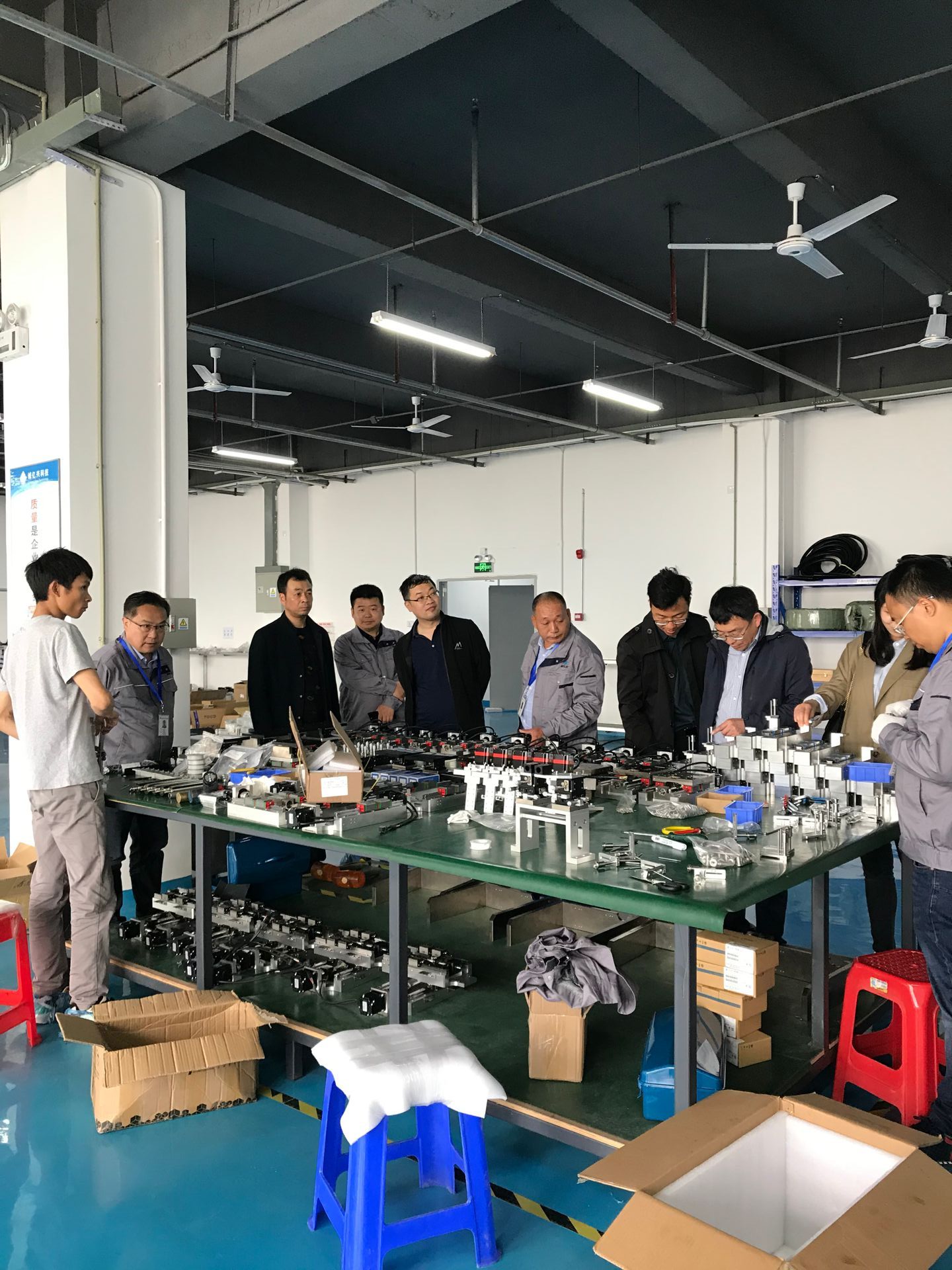 首先,在四川诚亿兴科技有限公司镀金部经理、机加部主管、装配部主管及工程师的陪同下,杨立林一行参观并了解了各部门的工作环境和内容。之后,在会议室开展座谈时,四川诚亿兴科技有限公司总经理张毅介绍了企业的详细情况以及校企合作的意向。电子电气工程系党总支书记杨立林高度认可四川诚亿兴科技有限公司积极参与学生的共同培养,认为学校与企业的合作可以从多个方面探讨——科研、教学、教师队伍建设等,从而实现学校与企业的双赢。机电教研室主任王婷和电气教研室主任赵国华分别从学生发展方面和师资培训方面表达了希望企业提供一个供学生和老师深入了解和学习的平台,2019级辅导员付明兰也就学生实际实习的时间、内容提出了结合实际的建议。最后,双方均表示此次参观和座谈效果很好,都展示了合作的诚意以及后期逐步开展工作切实达成长期合作的机制的意愿。