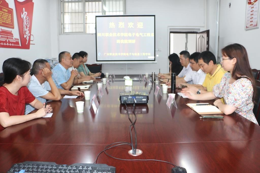 为了更好地建设物联网专业,7月1日,唐林院长一行前往广安职业技术学院电子与信息工程学院开展专业建设调研。广安职业技术学院电子与信息工程学院院长曾德贵向学院一行人员详细介绍了该院的专业建设、教师队伍建设、教育教学等工作情况。