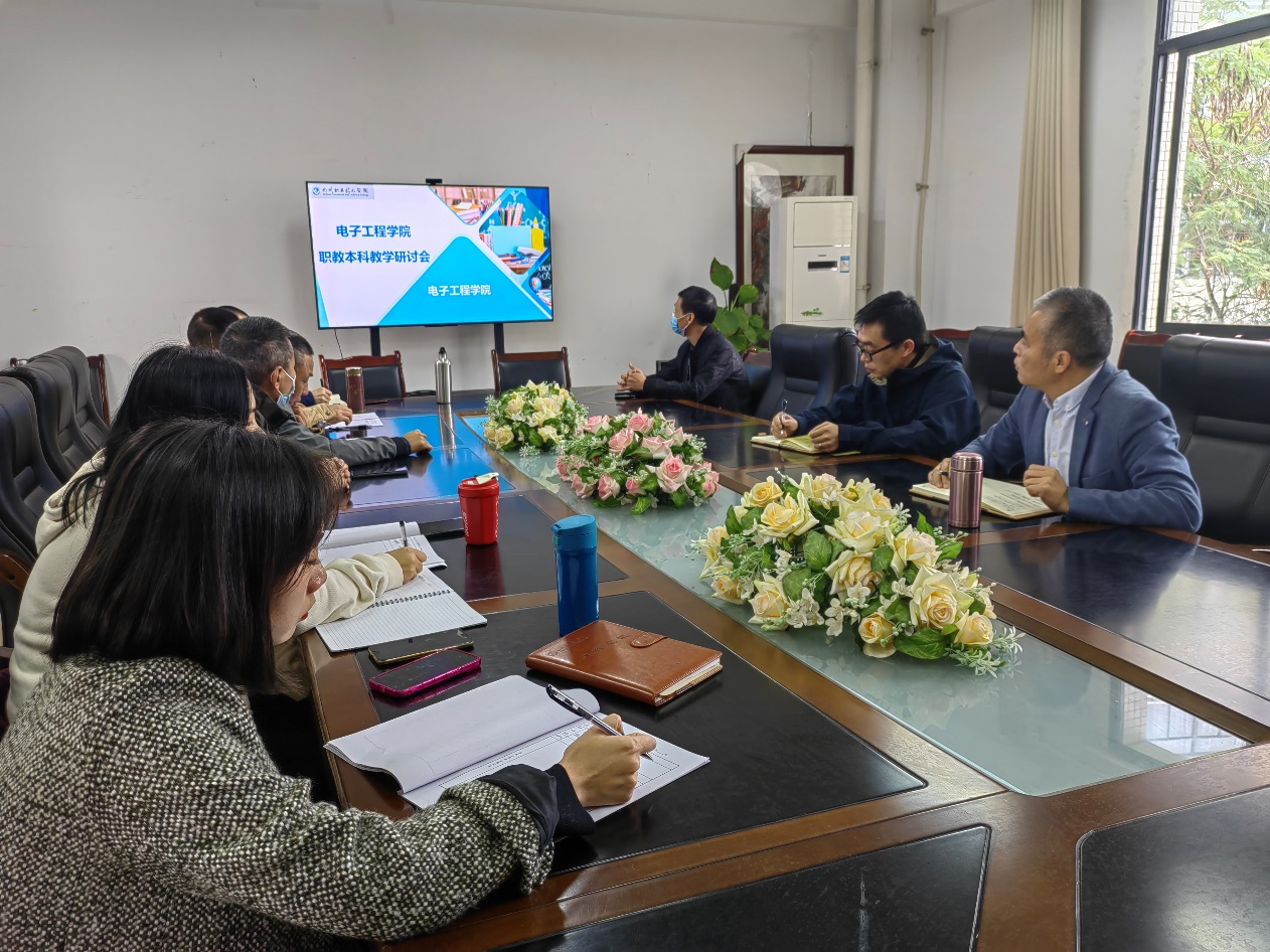 第二阶段是本科教学研讨会,唐林、罗强,教学科科长,教研室主任和所有本科专业的任课教师参加了会议。在教学研讨会上,所有参会教师剖析了学生提出的问题和不同生源学生的学情。老师们就教材的选择、教学环节的设计、学生能力、技能的培养等方面展开了深入的讨论。会议最后,唐林提出,职教本科试点要形成问题库,经验库,要起到示范引领作用。和其他学院、本科学校的沟通交流、教学教研要形成常态,教研室要组织更多的教师参与调研,参与到人才培养方案和课程标准的制定、教学改革的项目中来,要不断发挥团队力量,体现双元育人和职教本科特色。
