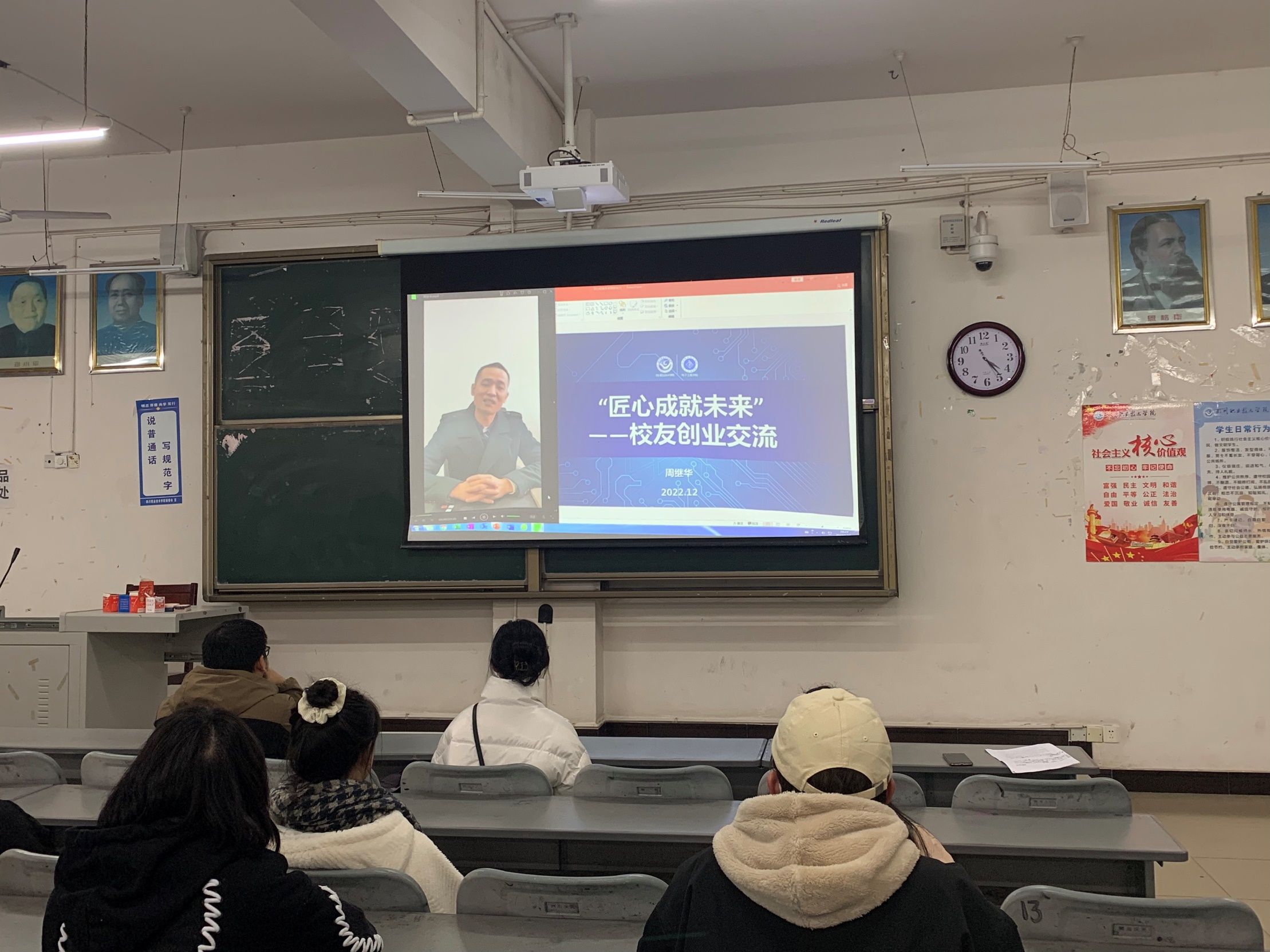 讲座还邀请到电子工程学院08电技专业优秀校友,四川瑞新轨道交通发展有限公司技术总监周继华为师生们带来主题为“匠心成就未来”的在线创业交流。他现身说法鼓励同学们以极致的工匠精神,支撑着在追逐梦想的旅程中稳步迈进。