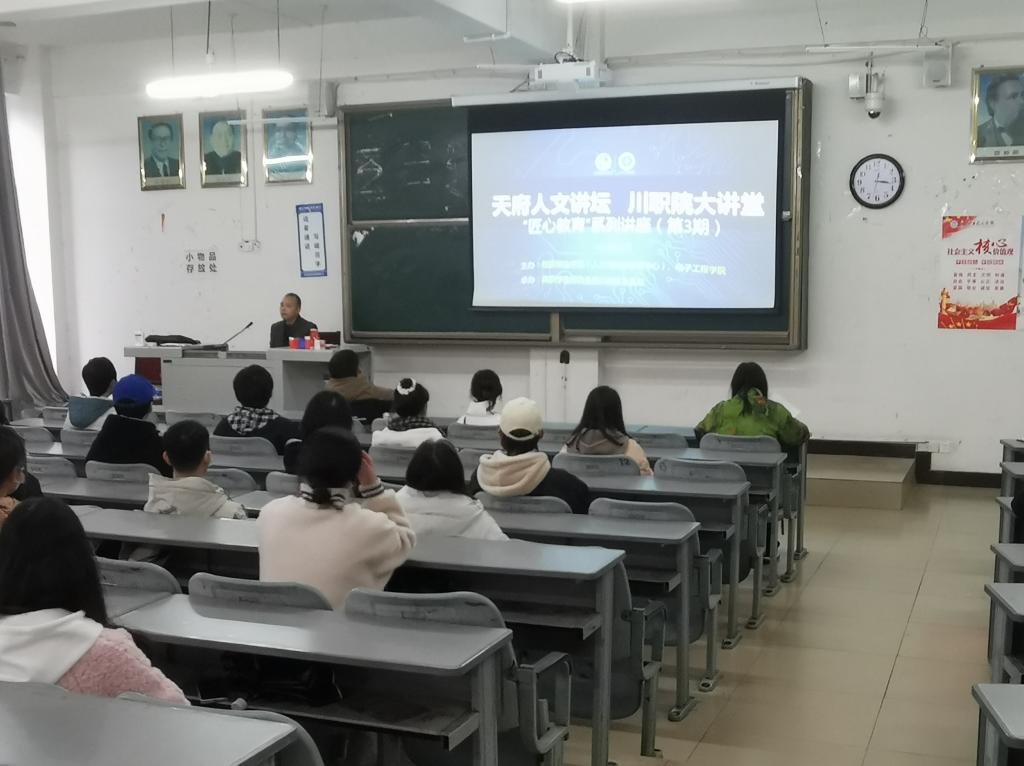 12月1日下午,川职院大讲堂“匠心教育”系列讲座第三期在尚学楼A203开讲,电子工程学院院长唐林教授走进讲堂作《匠“芯”精神引领,“电子航母”—PCB产业》专题讲座,电子工程学院师生60余人到场聆听。
