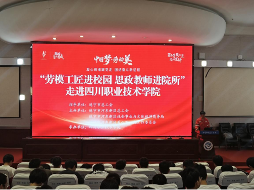 5月22日,四川职业技术学院联合遂宁市总工会、遂宁市河东新区总工会等相关部门,成功承办“中国梦 劳动美——凝心铸魂跟党走 团结奋斗新征程”四川工人大思政课宣讲活动。活动特邀中石油西南油气田川中油气矿工艺技术所工作室副领衔人、“遂州工匠”何国志走进校园,以“肩挑重担,让梦想绽放”为主题,为学校师生带来一堂生动的弘扬工匠精神教育课。校工会负责人及学院200余名师生代表共同参与。