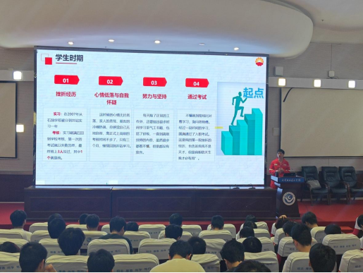 何国志结合16年的基层技术员成长经历,讲述自己在油气行业不断创新工作方式并促进科技成果转化与应用的生动实践,诠释了“干一行精一行”的职业追求。“严谨专注、精益求精,更需永不停歇的创新追求”是他对工匠精神的理解。何国志勉励在场学子,“青春因奋斗而厚重,平台因努力而广阔。珍惜校园时光,用‘较真儿’的态度打磨技能,用创新思维突破边界。”
